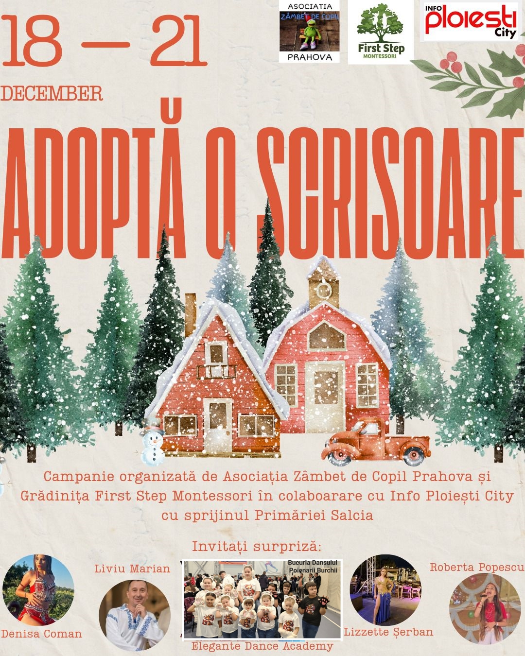 „Adoptă o scrisoare„.Moș Crăciun va aduce cadouri și un ”zâmbet de copil„, printr-un spectacol la Căminul Cultural din comuna Salcia