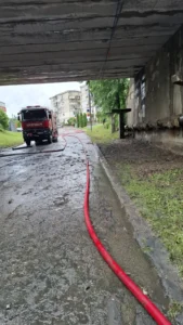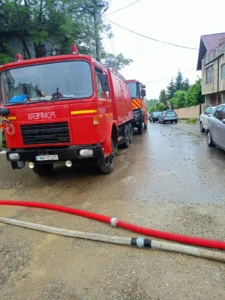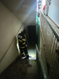 – evacuarea apei acumulate la subsolul unui bloc din orașul Slănic, unde s-a intervenit cu 2 autospeciale de stingere.