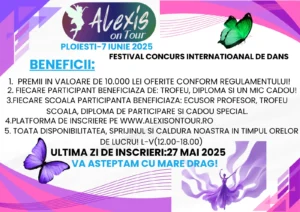 Reamintim, sâmbătă, 7 iunie a.c., la Casa de Cultură a Sindicatelor din Ploiești, va avea loc Concursul internațional de dans „ALEXIS ON TOUR„.