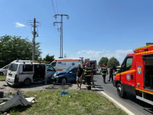 Accident rutier grav , pe DN1 – zona Păulești-Lido Gârbea.Au fost implicate un autoturism și o autodubița pentru transport muncitori. Cinci persoane au ajuns la spital