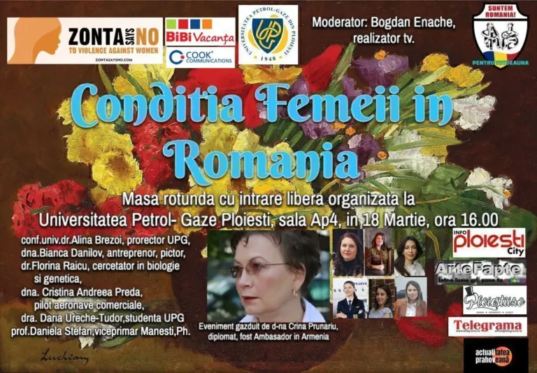 venimentul „Conditia femeii in Romania” va avea loc la sala Ap 9 in UPG Ploiești