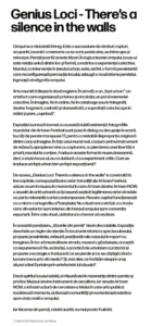 „Genius Loci: There’s a silence in the walls” aduce exteriorul în interior și pune față în față aceste două lumi, pentru a vedea dacă ele se pot împleti natural.