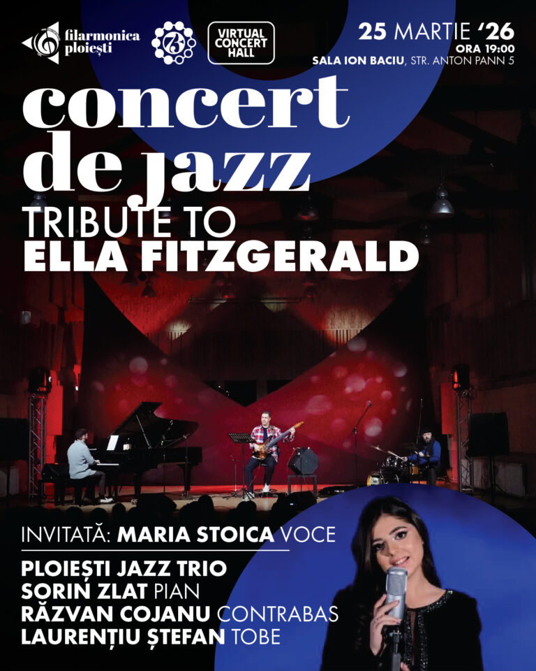 Miercuri, 25 martie 2026, muzica sa va prinde din nou viață pe scena Sălii „Ion Baciu”, când Sorin Zlat (pian), Răzvan Cojanu (contrabas) și Laur Stefan (tobe) – Ploiești JAZZ Trio – alături de Maria Stoica (voce) vor da glas celor mai frumoase cântece din repertoriul celebrei artiste. Într-o atmosferă elegantă și plină de rafinament, publicul va redescoperi farmecul standardelor care au făcut istorie și au consacrat-o pe Ella Fitzgerald drept una dintre figurile emblematice ale jazzului.