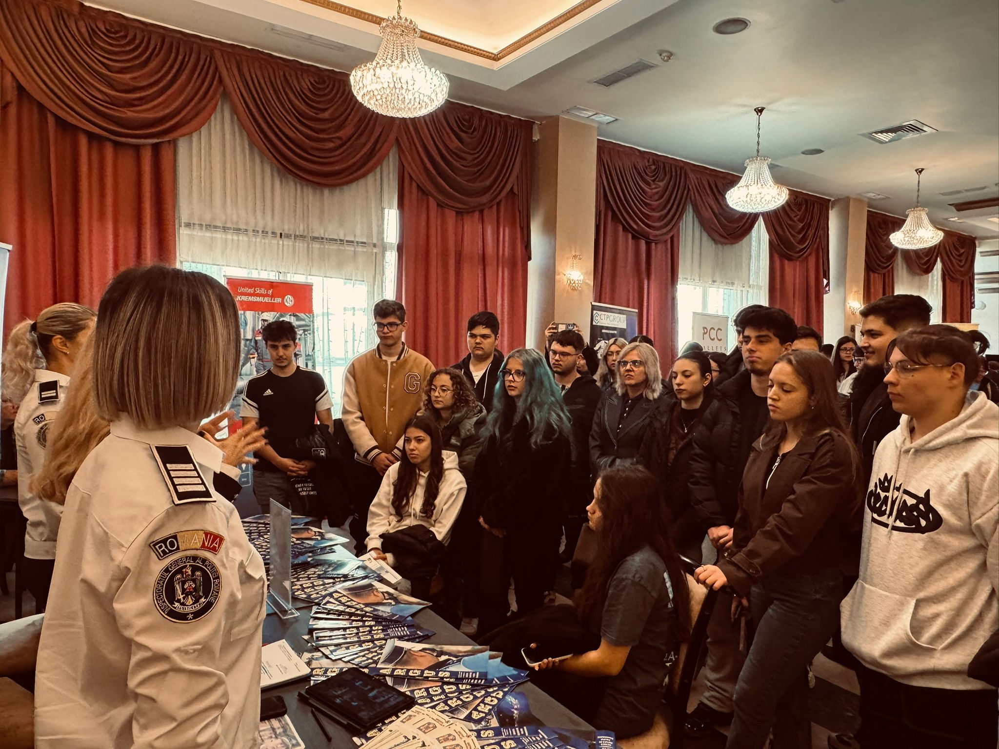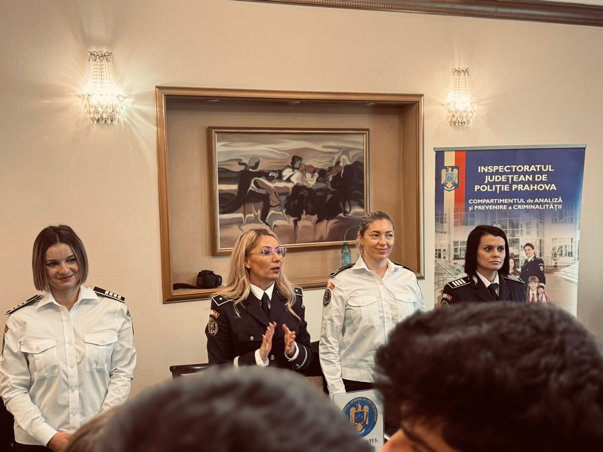 În cadrul acestui eveniment, reprezentanții IPJ Prahova oferă informații celor interesați despre oportunitățile de carieră în Poliția Română, precum și despre procesul de recrutare pentru sesiunea de admitere septembrie–decembrie 2025 în instituțiile de învățământ postliceal ale Ministerului Afacerilor Interne: