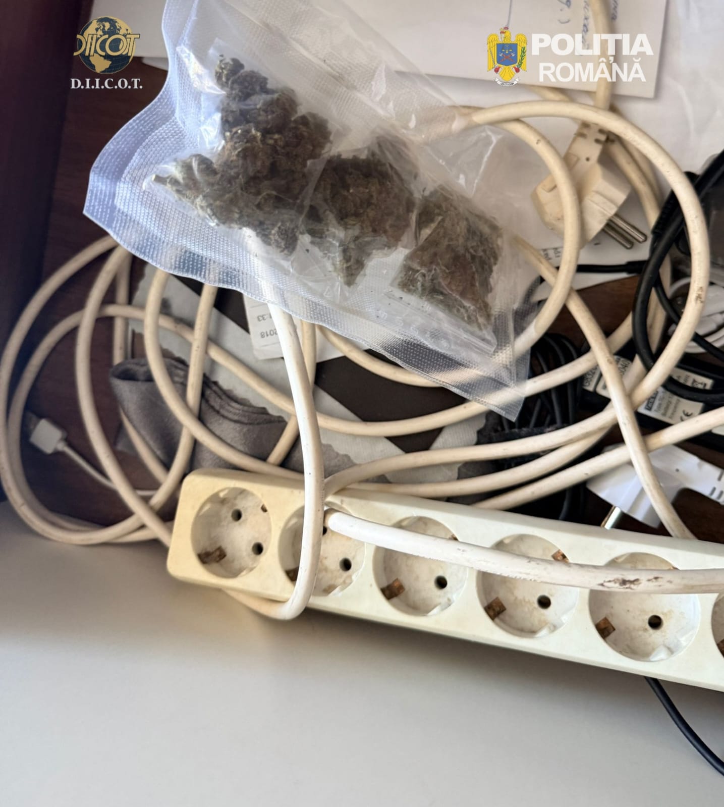 În urma perchezițiilor efectuate, în municipiul București, au fost descoperite și ridicate diverse recipiente și pungi conținând aproximativ un kilogram de canabis, o cantitate de cocaină, aproximativ 200 de grame de ciuperci halucinogene, plicuri autosigilante, obiecte purtând urme de substanță, grindere, cântare de precizie, precum și alte mijloace de probă.