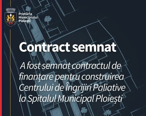Primăria Ploiești a semnat contractul de finanțare pentru construirea Centrului de Îngrijiri Paliative la Spitalul Municipal Ploiesti , un proiect dedicat pacienților care au nevoie de îngrijire specializată și sprijin uman, în momentele cele mai dificile.