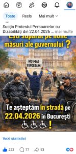 Protest național pe 22 aprilie 2026, în Piața Victoriei: societatea civilă cere respectarea drepturilor persoanelor cu dizabilități și ale categoriilor vulnerabile. Societatea civilă din România anunță organizarea unui protest național în data de 22 aprilie 2026, între orele 10:00 – 17:00, în Piața Victoriei, în fața Guvernului României (alveola mare).
