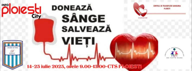Astfel, în perioada 14-25 iulie 2025, între orele 9.00-13.00, la Centrul de Transfuzie Sanguină Ploiești, va avea loc o nouă campanie de donat sânge.