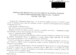 COMUNICAT DE PRESĂ SGU PLOIEȘTI. Lansare Program de Mentenanță a Spațiilor Verzi în Municipiul Ploiești – 2025