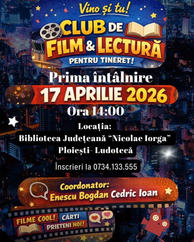 Participanții vor avea ocazia să vizioneze filme, să dezbată teme interesante și să exploreze lectura într-un cadru prietenos și creativ.